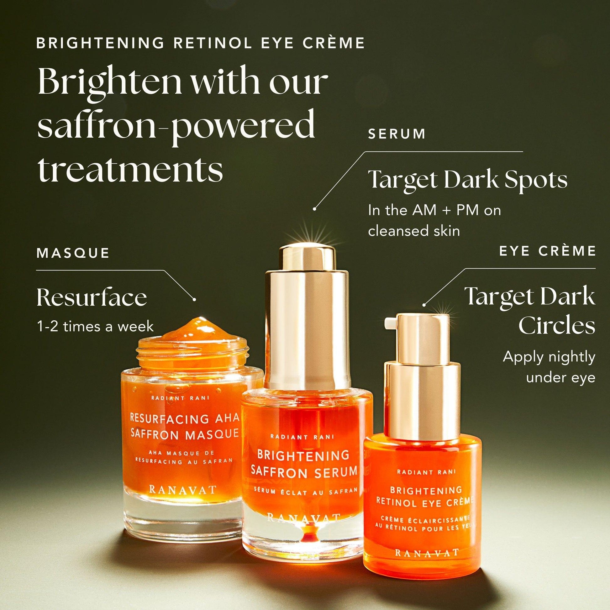 Brightening Retinol Eye Creme is a powerhouse formulation that harnesses the potent synergy of traditional and Ayurvedic retinols to tackle dark circles, fine lines, and puffiness head-on. This high-performance eye cream is a game-changer, delivering visible results with a radiant, youthful glow.