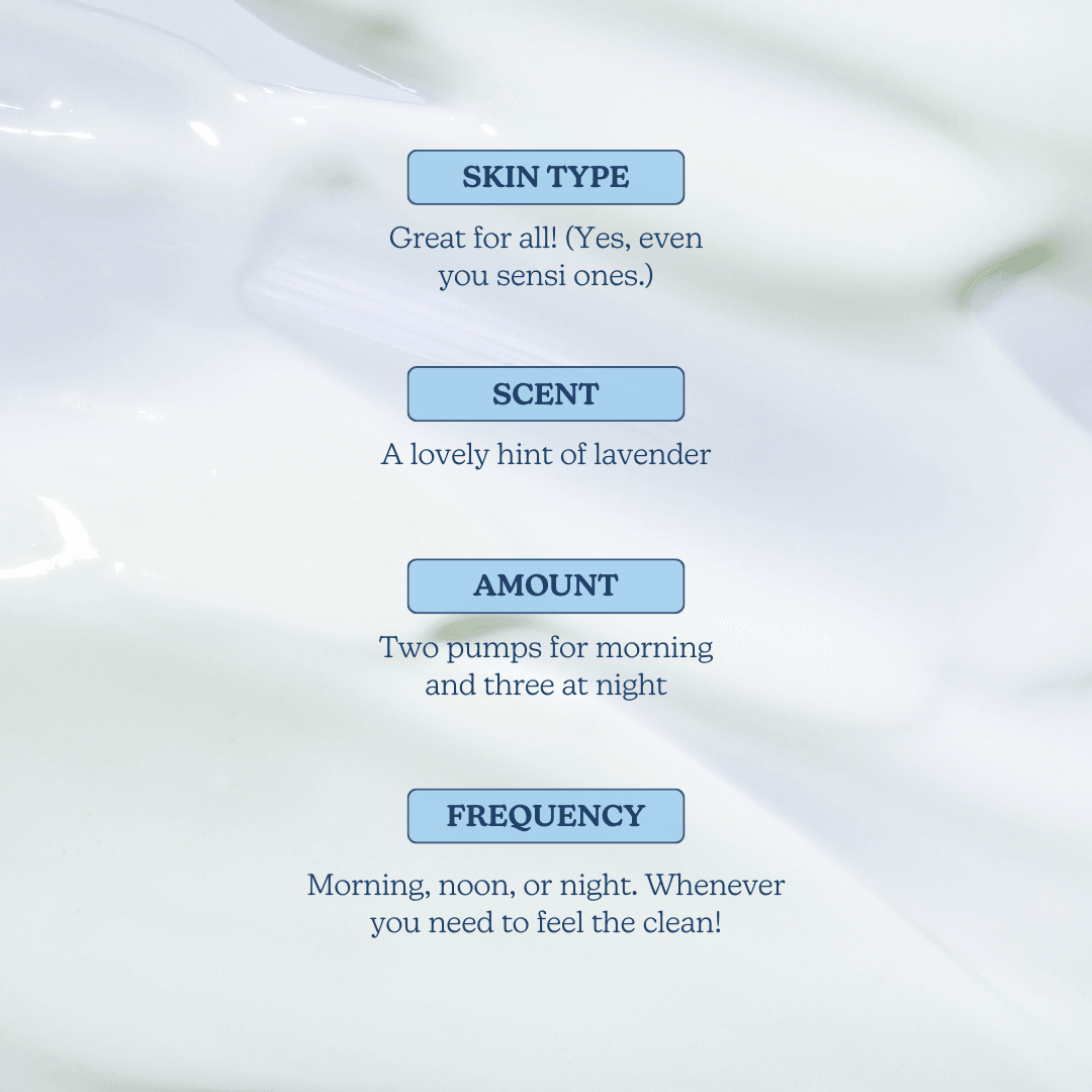 Daydreamer Face Wash is a dreamlike cleansing experience. This creamy, calming formula melts away impurities without stripping skin of its precious moisture. Infused with soothing plant extracts, it leaves your complexion looking even, plump, and supple – never tight or dry. Gentle enough for daily use, yet powerful enough to melt away every last trace of makeup and grime.