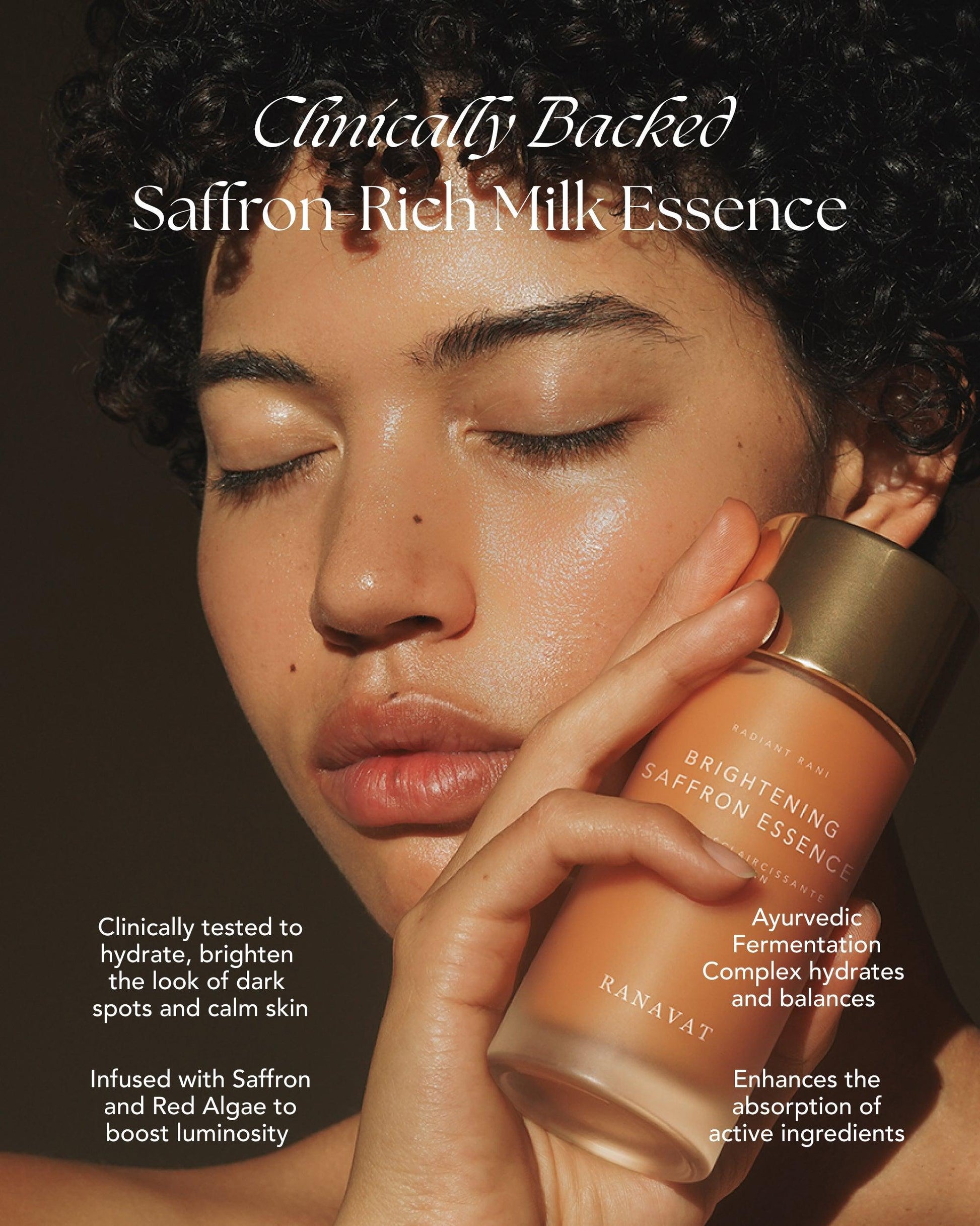 The Brightening Saffron Essence is your luxe prep step, enhancing skin's ability to absorb active ingredients. Think of it as a red carpet rolled out for your serum and moisturizer. This silky essence gets your complexion ready for its close-up.