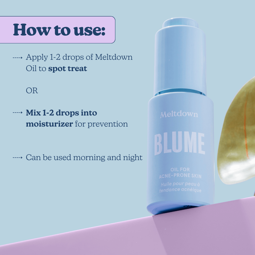 Packed with powerful actives, Meltdown Acne Oil is a targeted treatment that delivers visible results fast. Whether you spot treat or mix it into your moisturizer for full-face coverage, this vegan, cruelty-free oil is your secret weapon against stubborn breakouts.