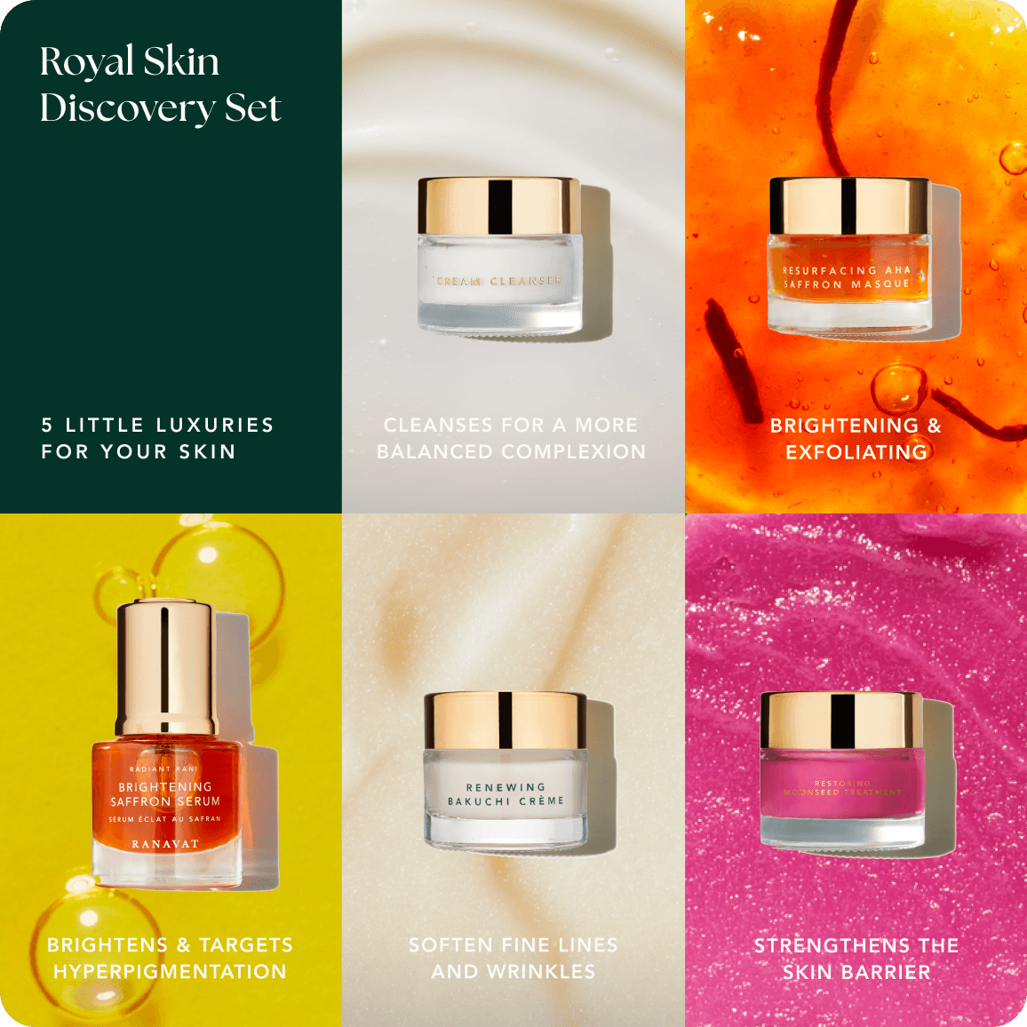 This clinically-proven, cruelty-free set is a sensorial experience, crafted with vegan, non-GMO formulas free from SLS, silicones, and synthetic fragrances. Unlock your skin's true potential and embark on a transformative journey with RANAVAT.