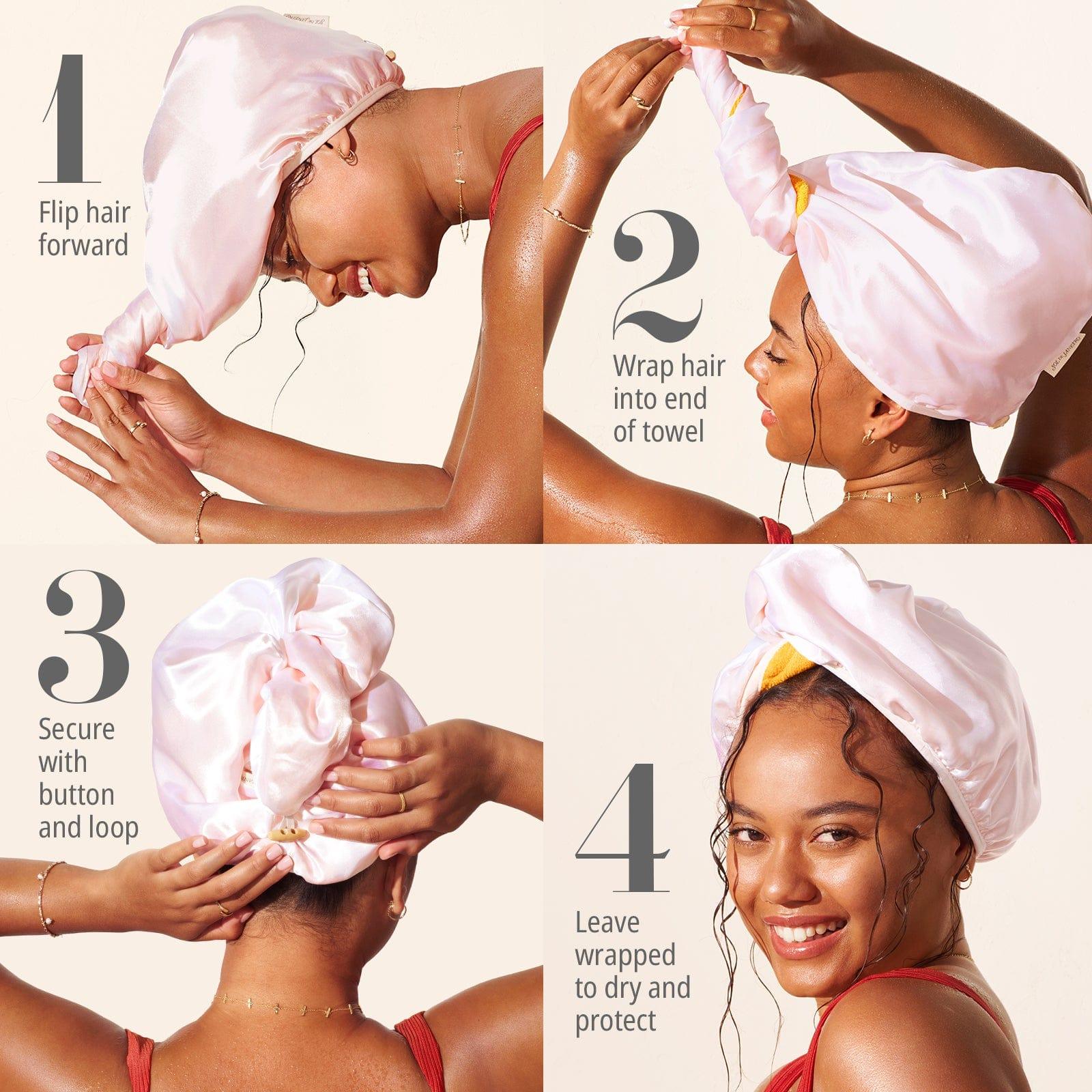 Babe, this dual-sided towel is a game-changer! One side is all-natural cotton, perfect for gently soaking up moisture While the other is silky satin, keeping your tresses frizz-free and gorgeous On wet hair days, the cotton side is your bestie It'll absorb water like a dream, leaving your locks hydrated and healthy No more damaging heat or rough towel-drying, honey! Then, when your hair is dry, flip it over to the satin side Overnight protection from breakage and frizz? Yes, please! Your hairstyle will stay on point, no matter how you toss and turn And let's not forget, this towel is generously sized Enough room for even the thickest, longest manes All hair types and lengths are welcome, darling! Simply hand wash with a gentle detergent and cool water Then hang dry, and it's ready for your next hair adventure Effortless, chic, and oh-so-fabulous!