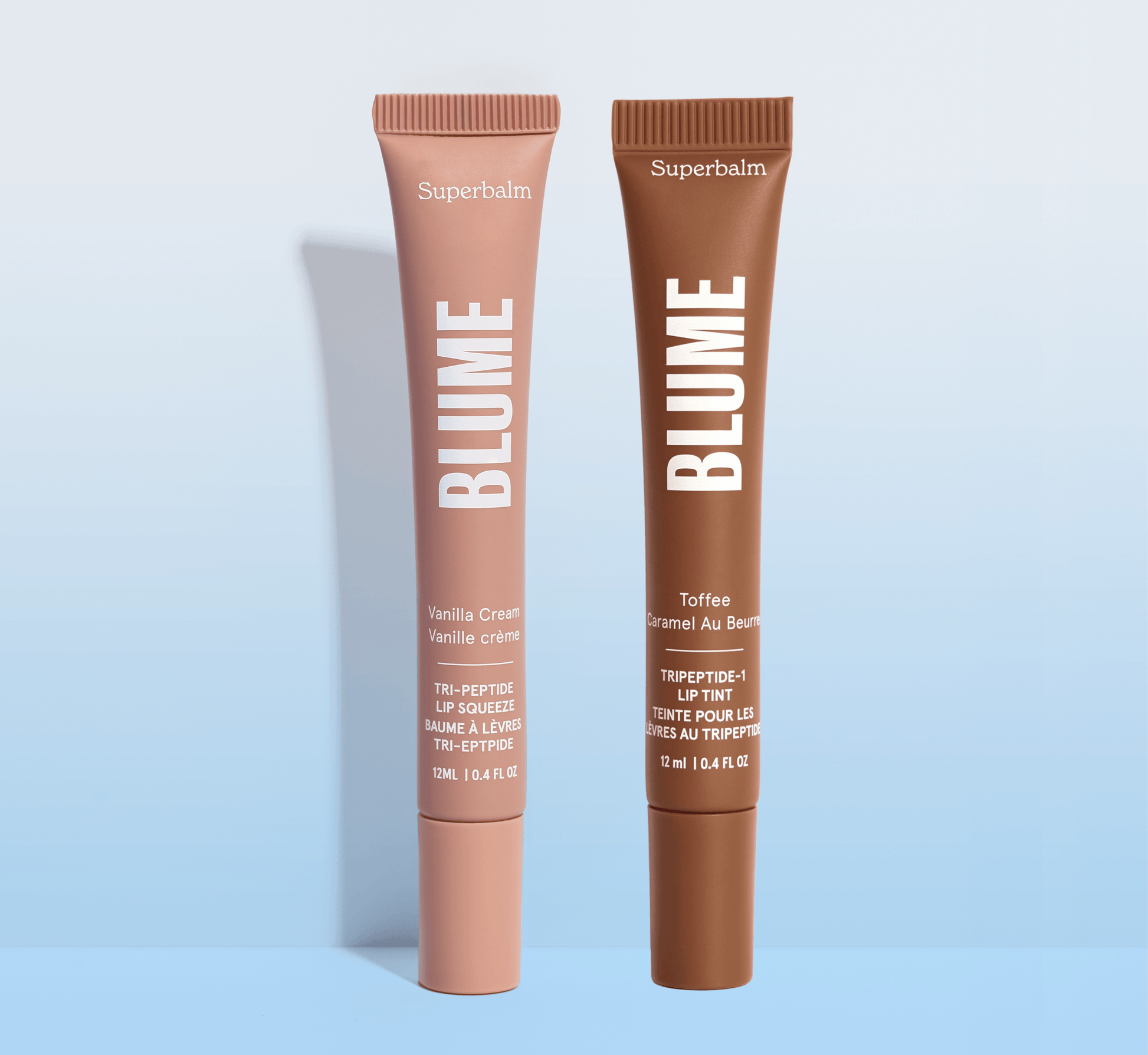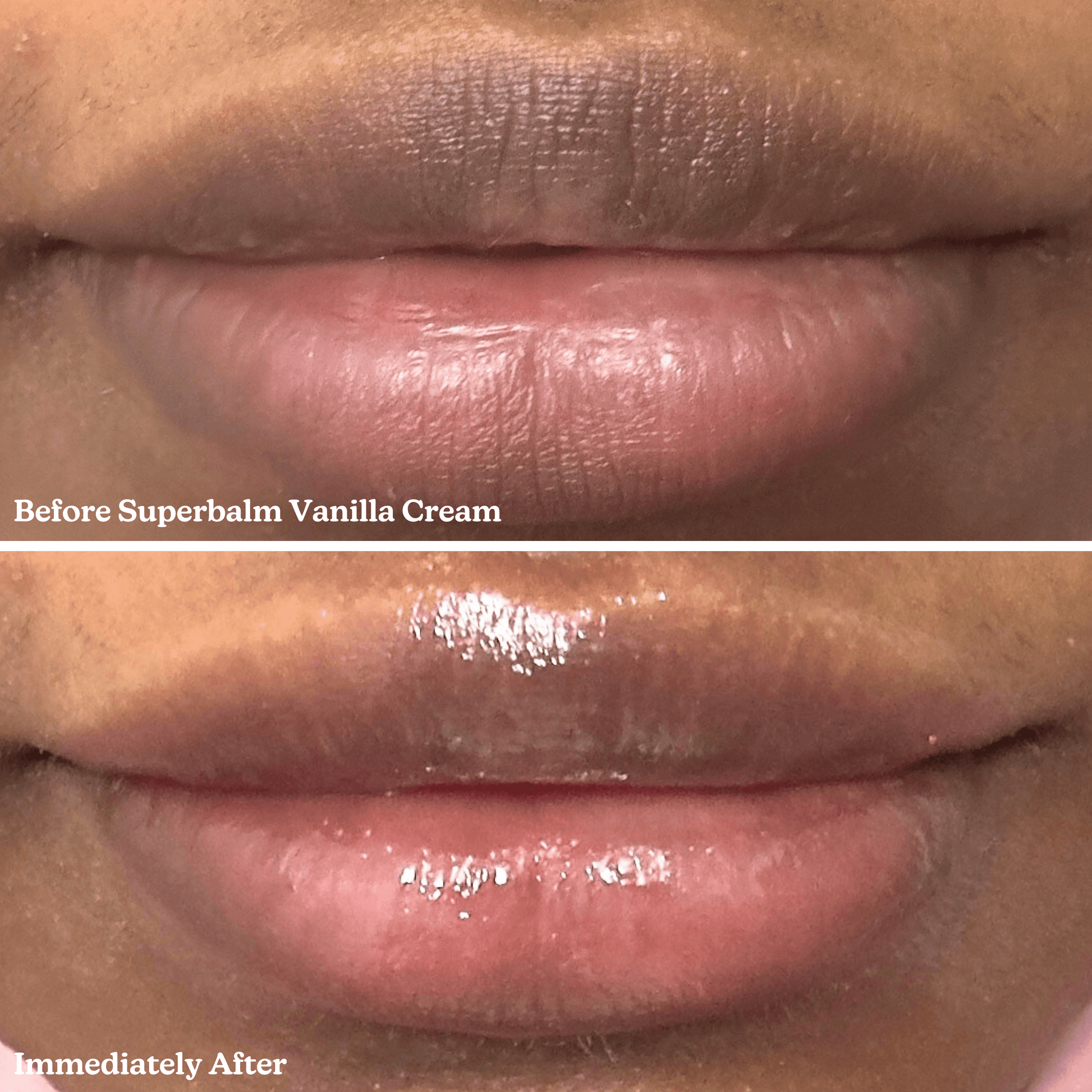 Superbalm Duo: Vanilla & Toffee is a double-duty lip treat that nourishes and indulges. An ultra-hydrating vanilla cream glaze locks in moisture with a dreamy, vanilla bean-like scent that's as luscious as ice cream. The rich, soft brown toffee balm delivers a silky, cushiony feel and a decadent, warm dessert aroma. Infused with collagen-boosting tripeptides and three sumptuous butters, these derm-tested balms smooth, plump, and deeply condition with every swipe. Apply a sheer veil for all-day hydration and shine, or slather on a thick layer before bed for pillow-soft, juicy lips by morning. Indulge in this dynamic duo for lips that look and feel irresistibly kissable.